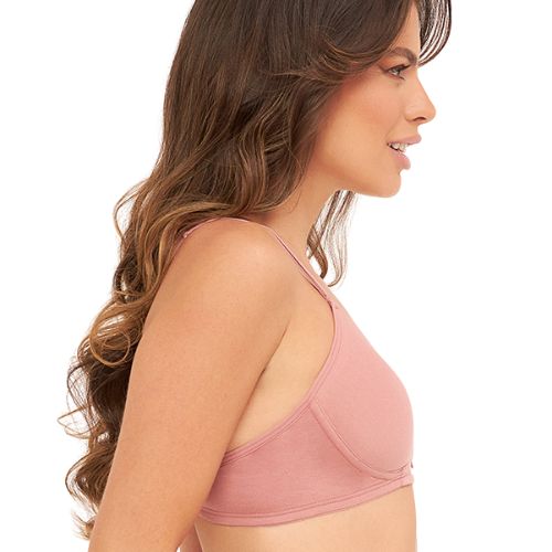 Bojo modelo triângulo com base liso em algodão com elastano Possui bojo flex, em espuma leve, ultramacia Não possui aros Decote com medalha na cor da peça no centro do busto Base estreita com elástico seguro e macio na cintura Costas retas com abotoador estreito com 3 ajustes Alças delicadas e paralelas com regulagem, em todos tamanhos